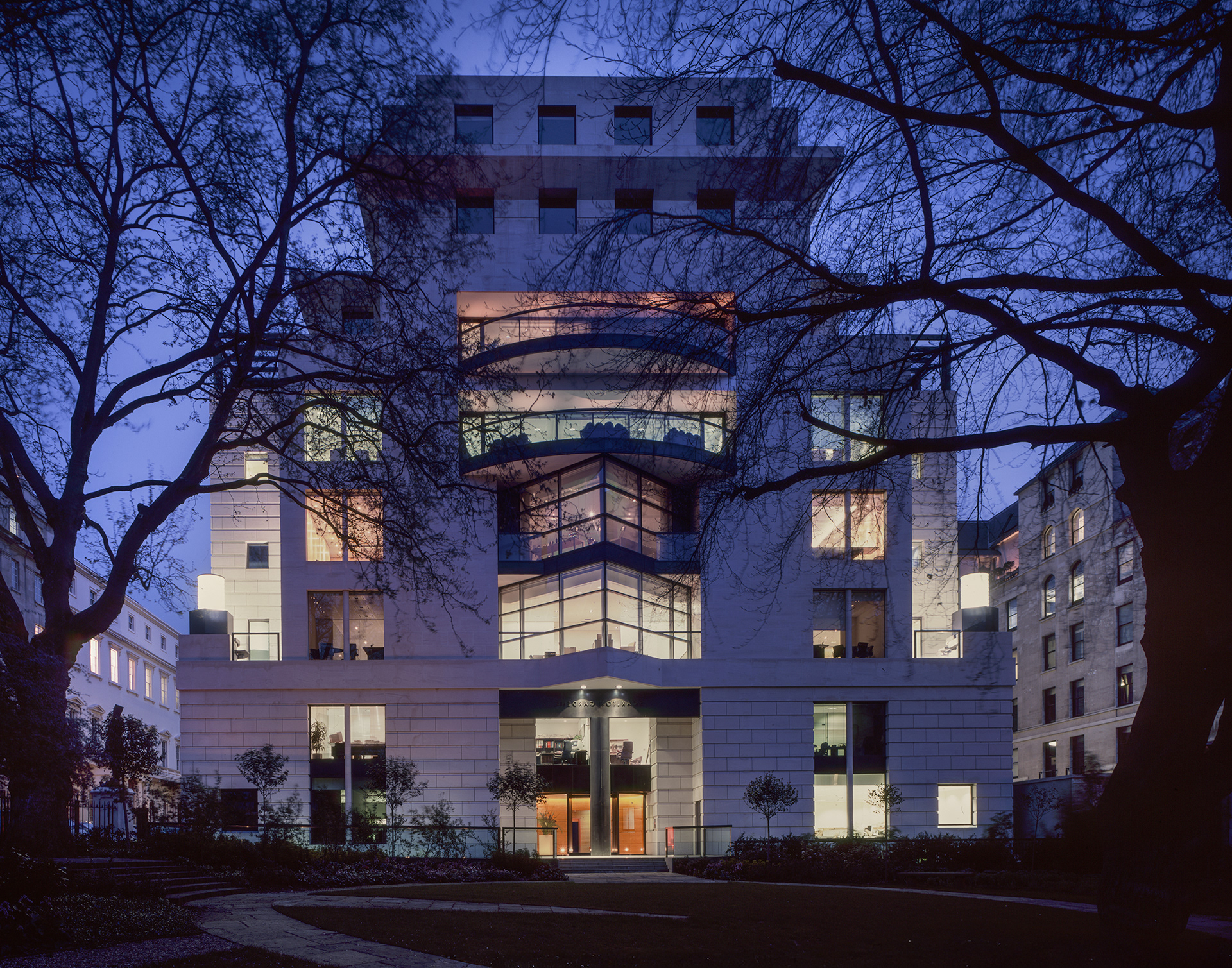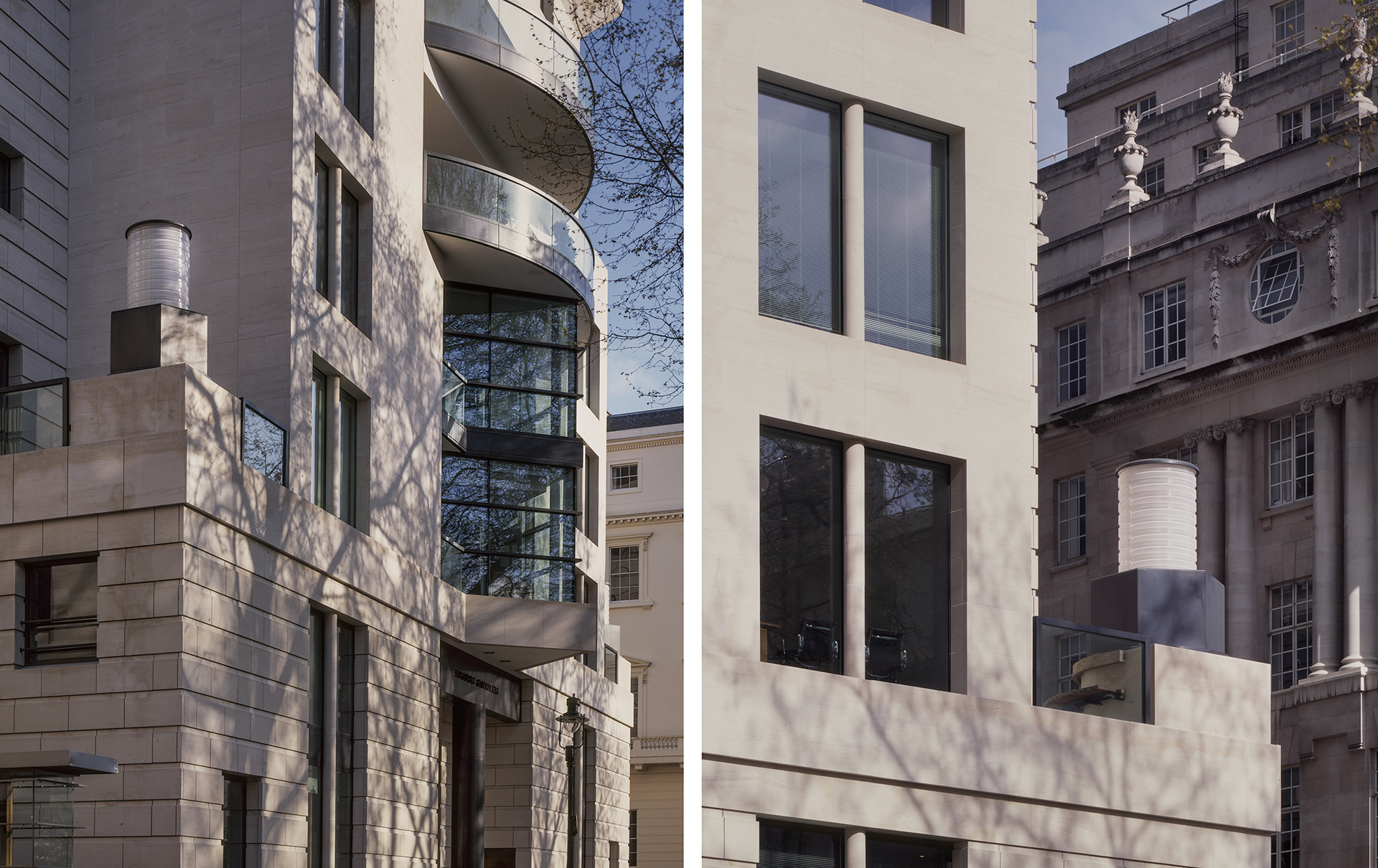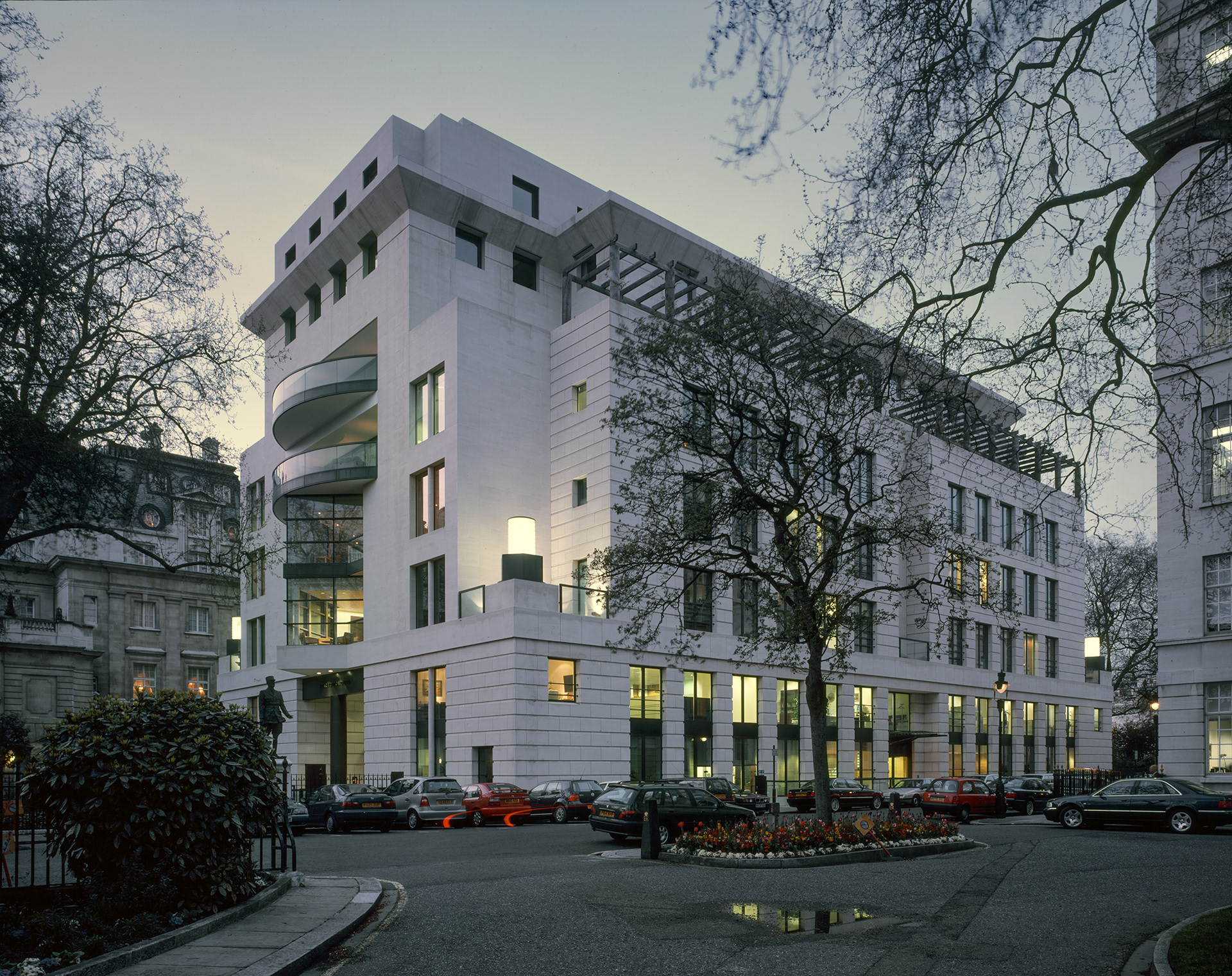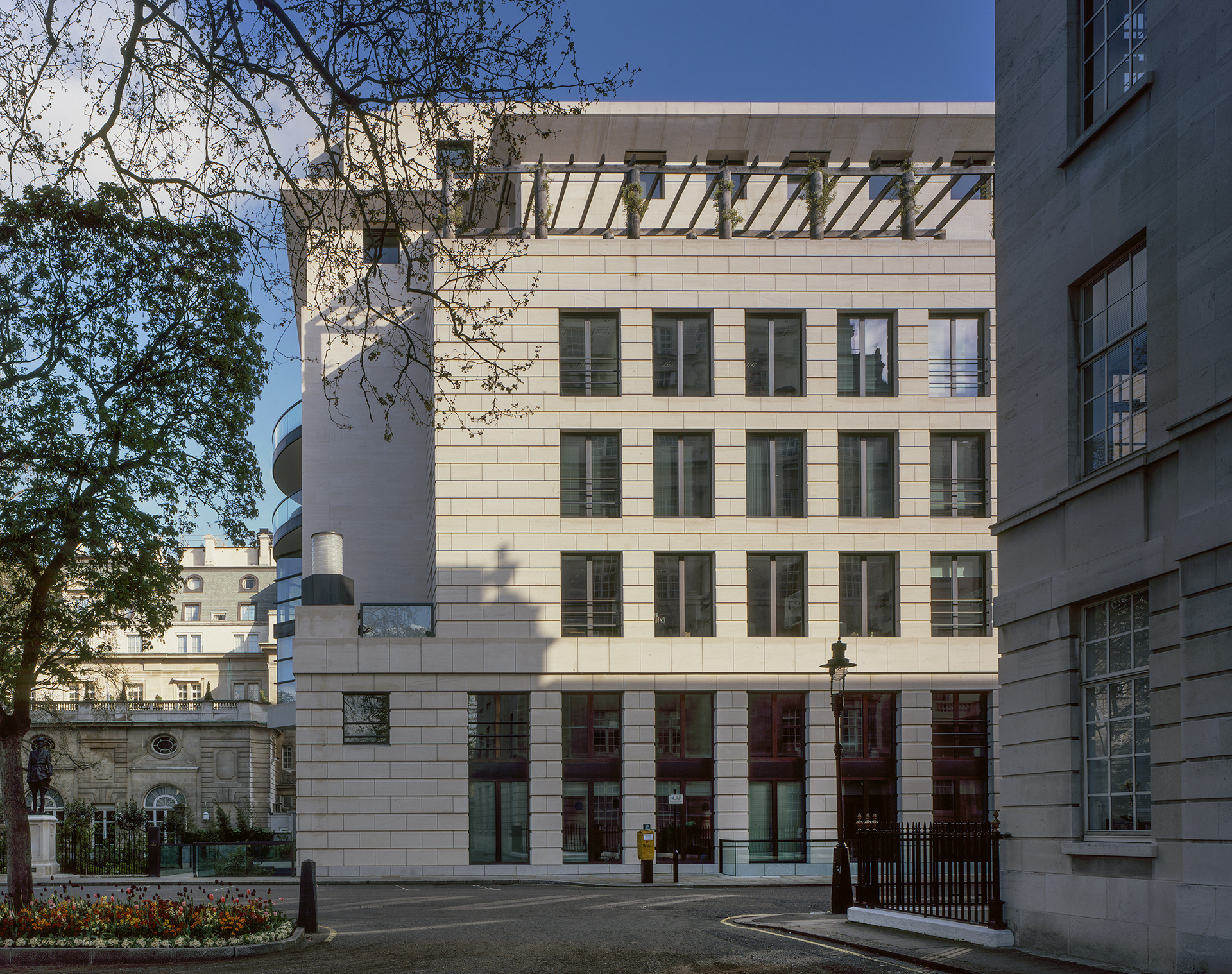 James Stirling and Michael Wilford designed the 1988–1999 Carlton Gardens project, a mixed-use development comprising office and residential accommodation in London. Commissioned by Ove Arup. 2001